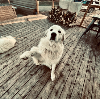 news of our great pyr, cathy, being pregnant (almost due!)
